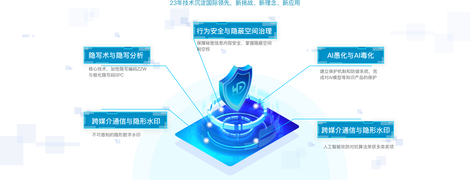 本着“储备一代、研发一代、产业一代”的思想,初步完成了核心技术和产业方向布局:新型数据安全系列、数据要素安全治理系列、AI认知安全系列(含“合成现实”虚拟数智人)等解决方案与服务等。