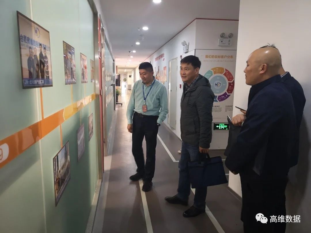 高维数据创始人田辉为周丰平副局长、张新宏处长一行介绍公司产品获得的荣誉证书。周丰平副局长对高维数据的新理念、新技术、新产业给予了充分肯定,并就公司创新产品的市场发展等给予指导。