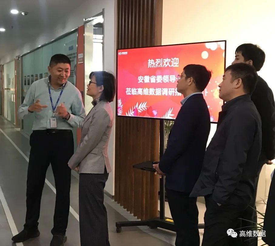 10月28日下午,安徽省委副秘书长吴璀平、合肥市委副秘书长崔国斌一行莅临高维数据参观,公司创始人、总经理田辉向吴秘书长一行汇报了公司的相关情况。