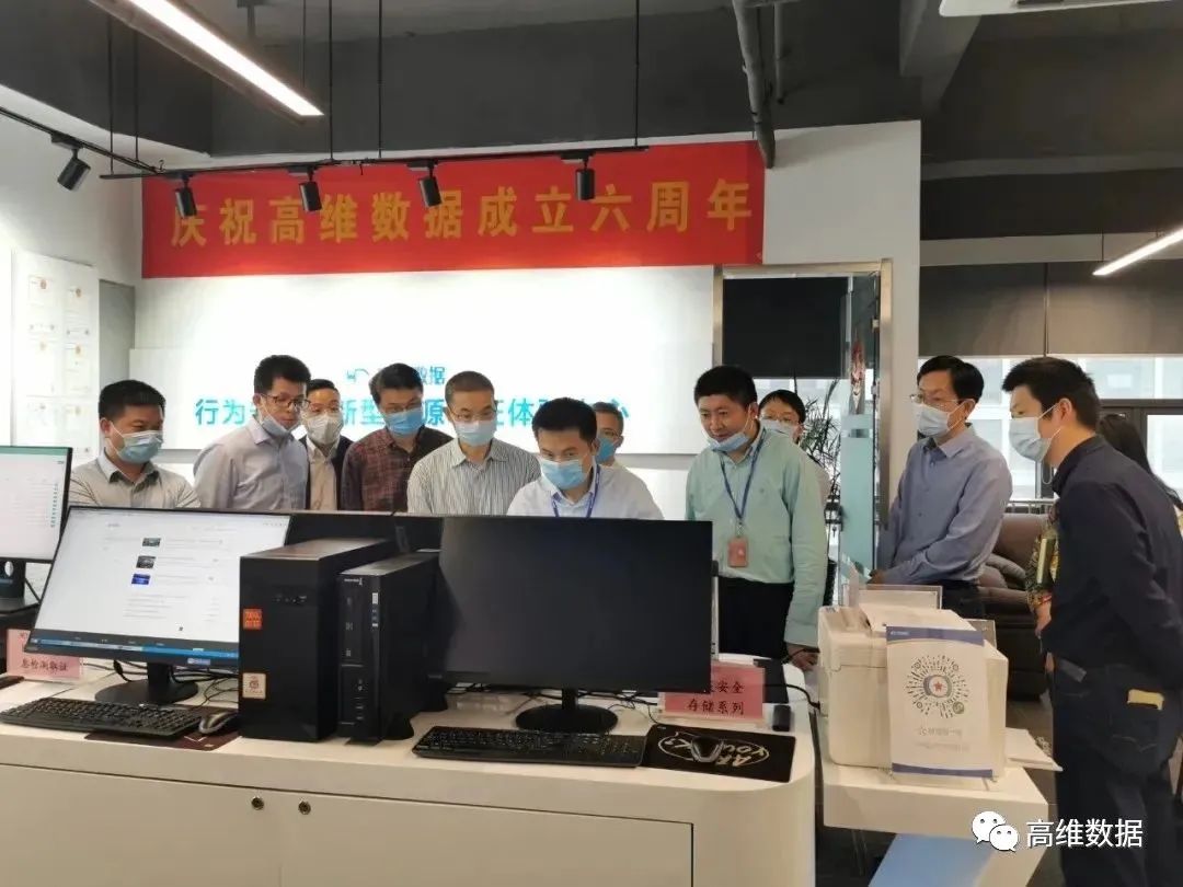 4月30日,合肥高新区工委书记、管委会主任宋道军率区经贸局、科技局、财政局、高创公司等一行莅临高维数据调研。