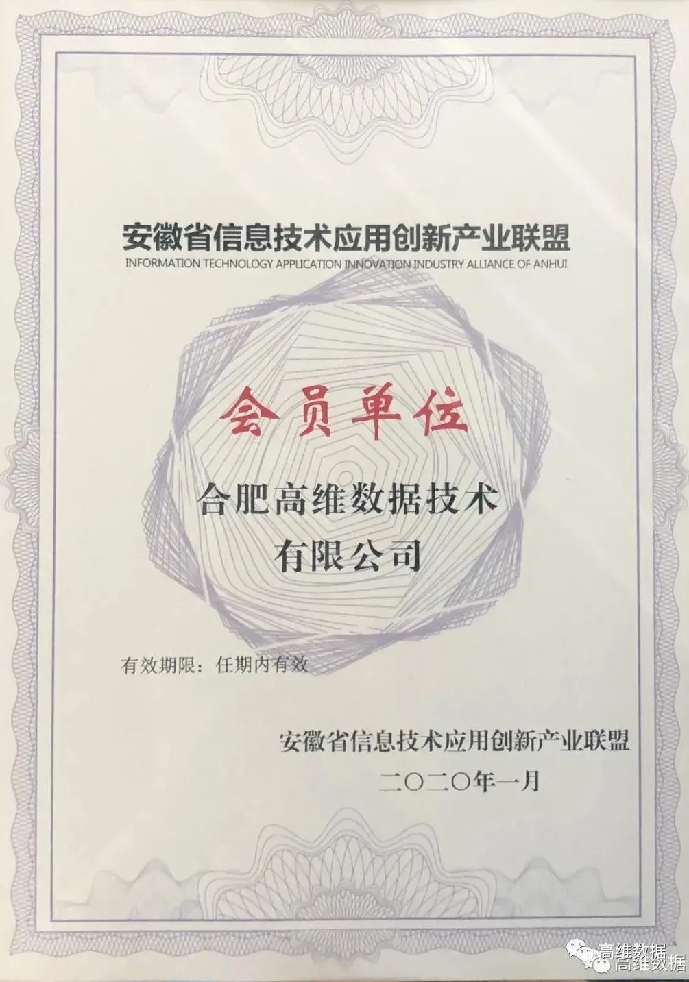 1月4日,安徽省信息技术应用创新产业联盟揭牌仪式举行,高维数据应邀成为联盟的创始会员单位。