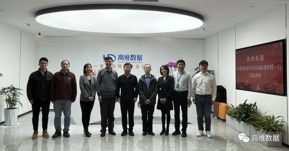 3月4日下午,360集团首席安全官杜跃进教授一行莅临高维数据调研指导,高维数据CEO、合肥高新区网络信息安全产业联盟秘书长田辉热情接待。
