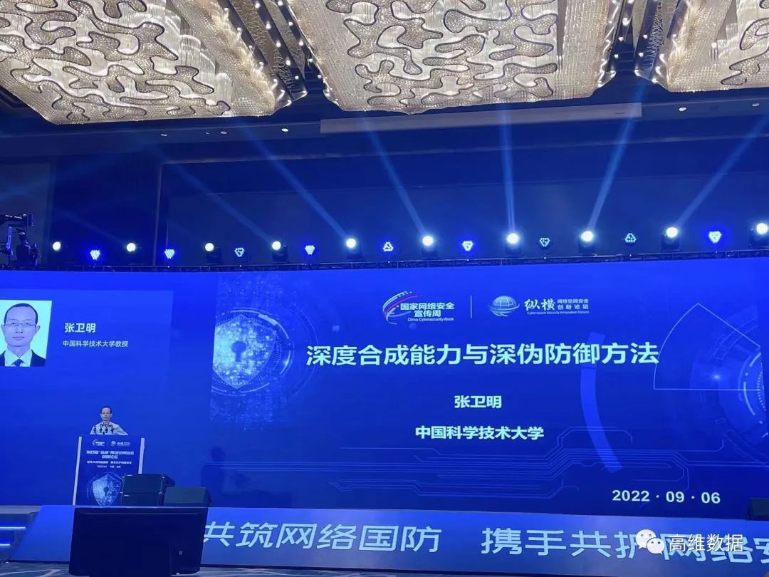中国科学技术大学网络空间安全学院副院长、公司总工程师张卫明教授应邀出席,并以《深度合成能力与深伪防御方法》为题发表了专题演讲。张教授结合国际国内前沿的应用需求和热点事件,分享了新形势下AI深度伪造与防御技术在社会、军事、经济等方面的应用价值,获得了与会观众的积极好评。