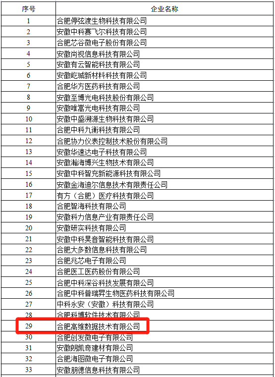 近日,安徽省经济和信息化厅发布《关于公布2022年度安徽省创新型中小企业名单的通知》,高维数据成功入选,被认定为安徽省创新型中小企业!