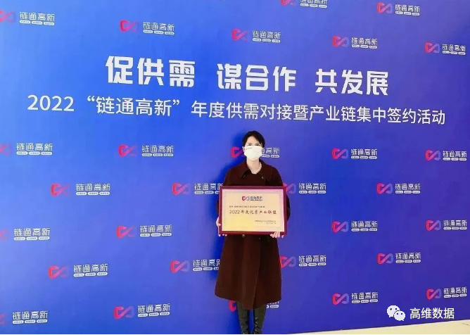 1月10日下午,2022“链通高新”年度供需对接暨产业链集中签约活动在中安创谷全球路演中心成功举办!高新区网络与信息安全产业联盟,荣获“2022年度产业联盟优秀示范单位”,合肥高维数据技术有限公司作为联盟的秘书长单位代表联盟领奖!