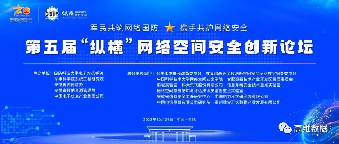 论坛以“军民共筑网络国防、携手共护网络安全”为主题,由军事科学院和国防科技大学主办,国防科技大学电子对抗学院、军事科学院系统工程研究院、安徽省委网信办、安徽省数据资源管理局、合肥市人民政府、中国电子信息产业集团等共同承办。