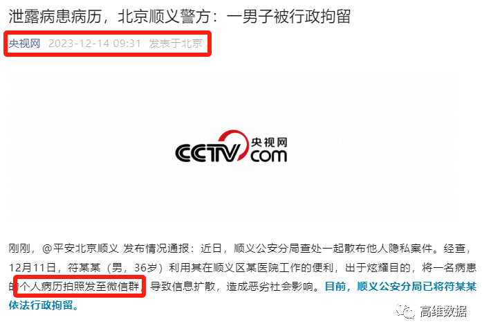 患者的诊疗信息泄露如此之快,不得不让患者产生了疑问,以及对医疗机构不信任。