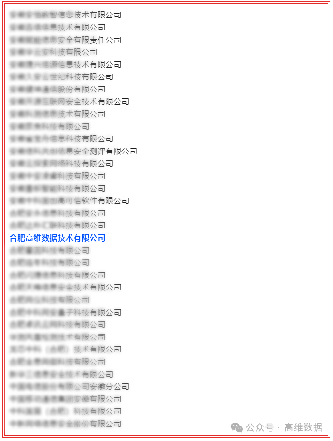 2024年6月13日,合肥市委网信办发布《关于推广国家网络安全教育技术产业融合发展试验区优秀网安服务企业的通知》,公布了国家网络安全教育技术产业融合发展试验区优秀网安服务企业情况,高维数据成功入选优秀网安服务企业名录!