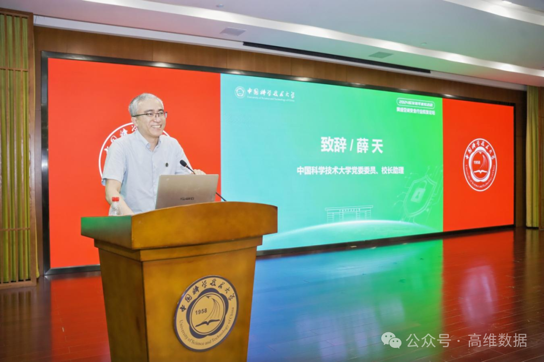中国科学技术大学党委委员、校长助理薛天现场致辞,回顾了网络空间安全学院成立当年就入选了中央网信办、教育部首批“一流网络空间安全学院建设示范项目”,提出支持网络空间安全学院的示范建设。同时勉励网络空间安全行业校友会为校友组织建设和发展增添更多活力,汇聚校友智慧和力量,为网络空间安全学科建设和行业创新发展注入新的思路和动力。