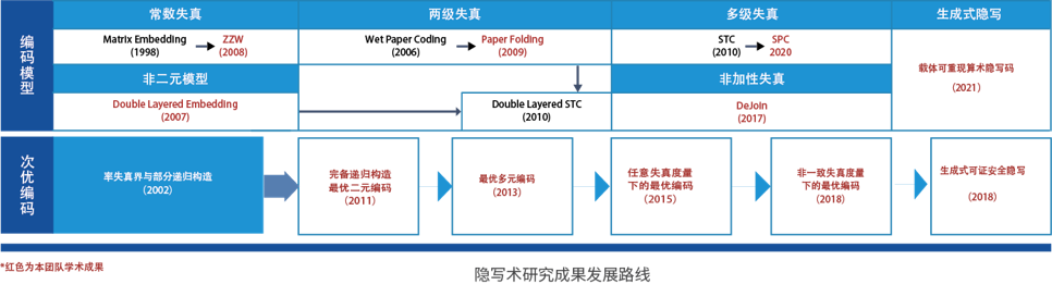 近年来研究团队提出了基于生成数据的可证安全隐写,2021年至今,团队多项研究成果在国内外顶刊发表,推动了隐写算法安全性从经验安全到可证明安全的跨越。
